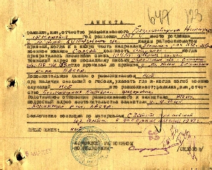 Направлен в Аскинский РВК в январе 1942 г., прекратилась письменная связь в феврале 1943 г. Воинский адрес по последнему письму: Саратовская область, г. Аткарск, п/от. 150 п/я 159.н., Должность: стрелок.
